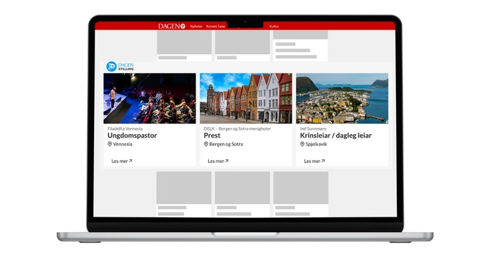 - Publisering på https://stilling.dagen.no/ frem til søknadsfristen. Disse blir også vist på fremsiden til dagen.no og sendes ut til alle som er påmeldt vårt ukentlige nyhetsbrev for stillinger. Du kan melde deg på nyhetsbrevet her.